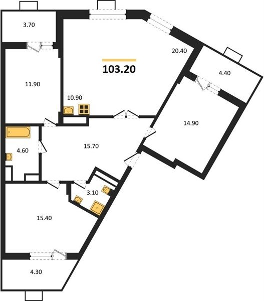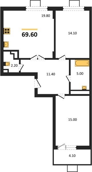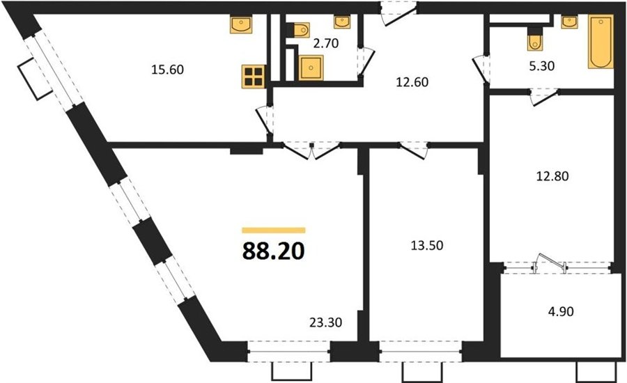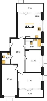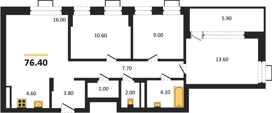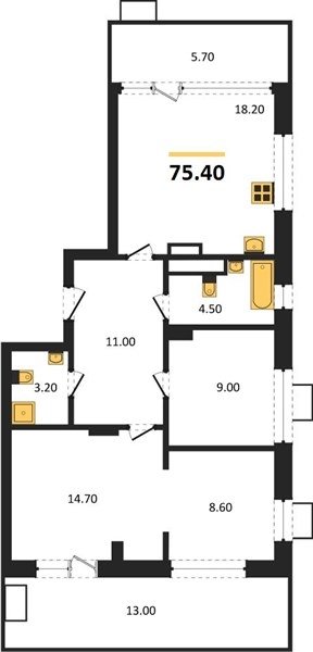 Площадь от 75.4 м2