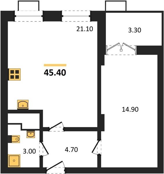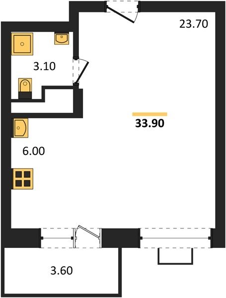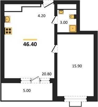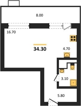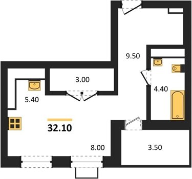 Площадь от 32.1 м2