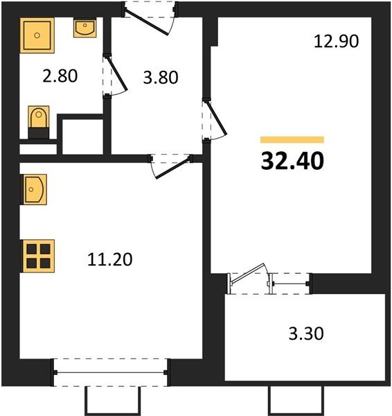 Площадь от 32.4 м2