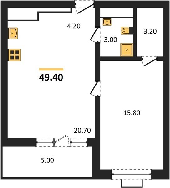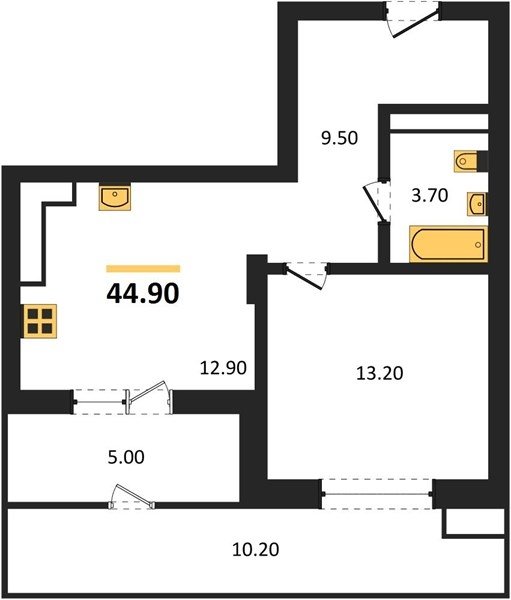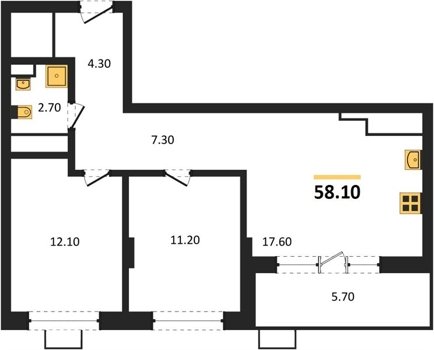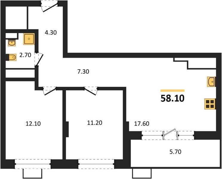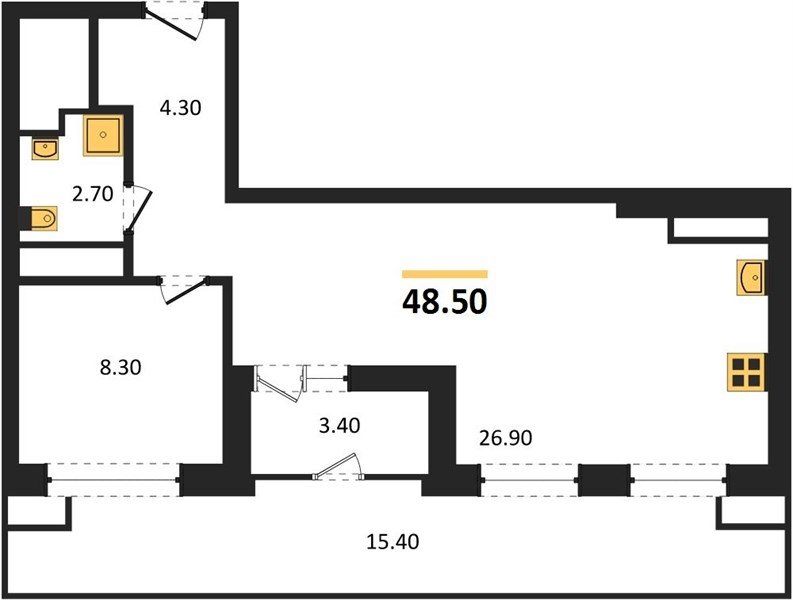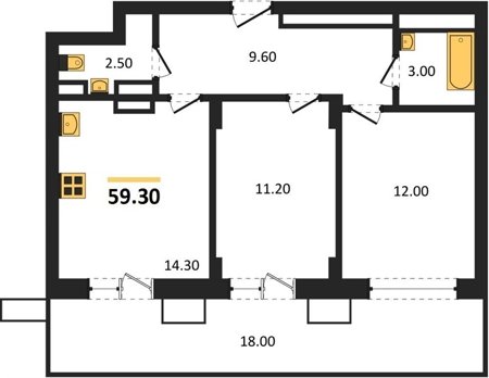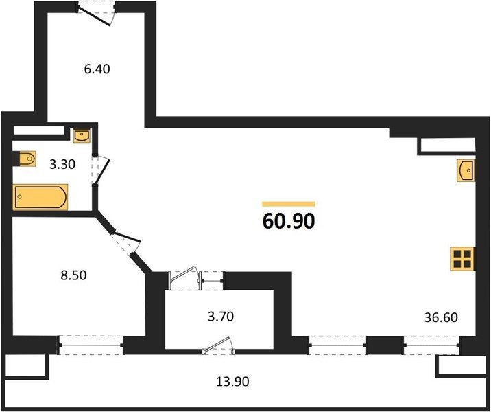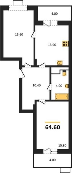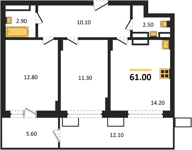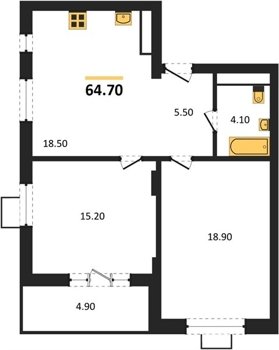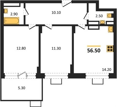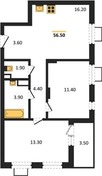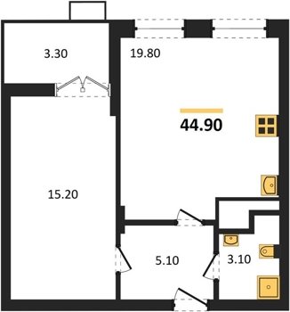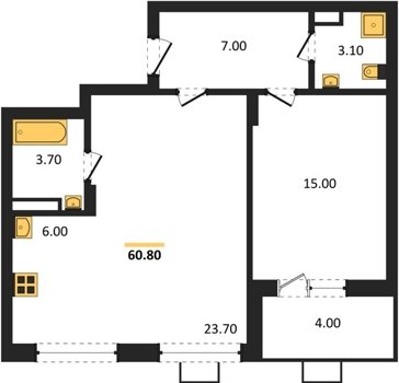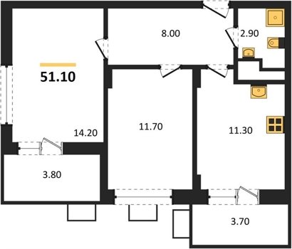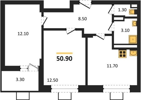 Площадь от 50.9 м2